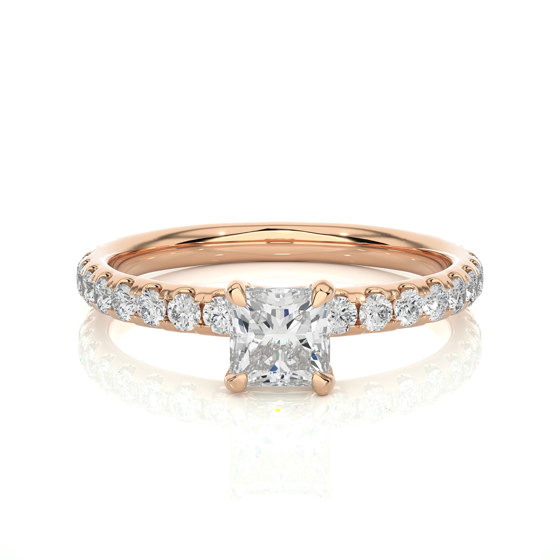 0.60 Carat Solitaire Princess Cut Lab Grown Diamond Ring with Accents (1.01 CTW Diamonds)