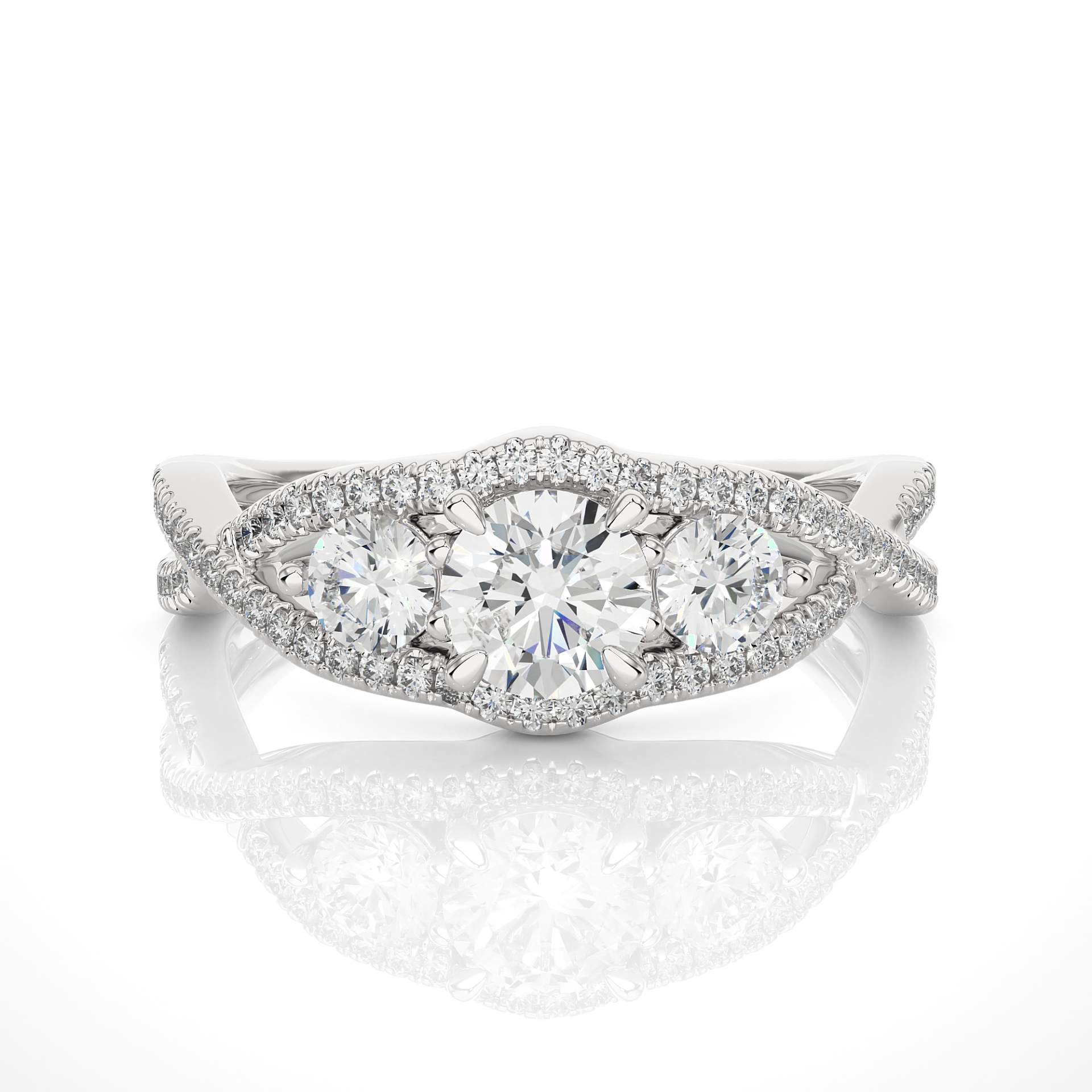 1.10 Carat Criss-Cross Lab Grown Three Stone Diamond Ring.