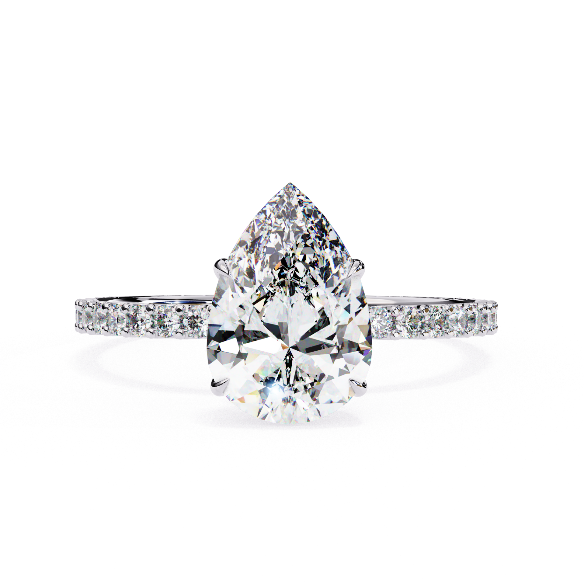 1.25 Carat Pear Solitaire Ring Adorned with Smaller Diamonds.( 1.55 CTW Diamonds)
