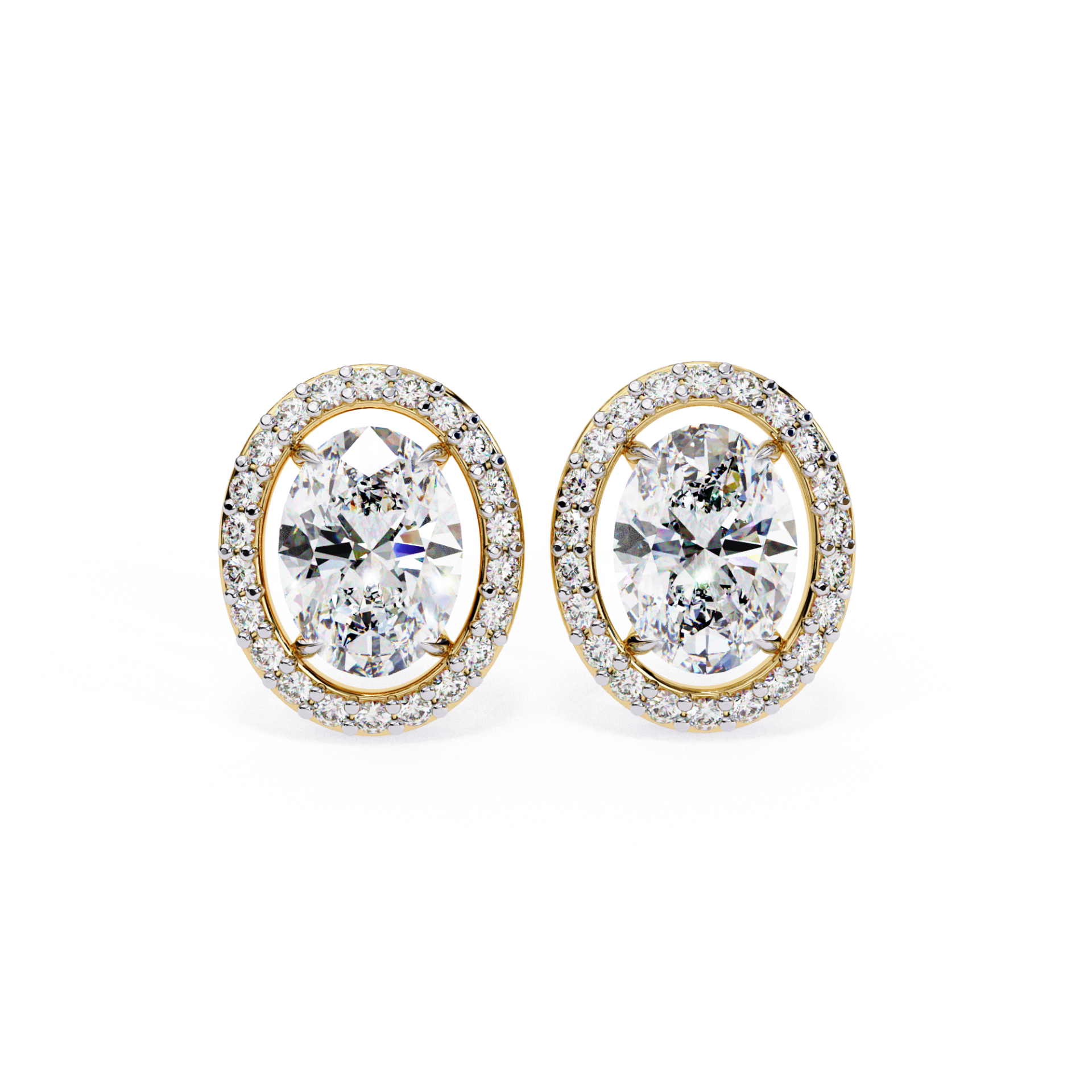 1.50 carat solitaire Oval Cut Earrings, Each With a Halo Of Smaller Diamonds.(1.70 CTW Diamonds)