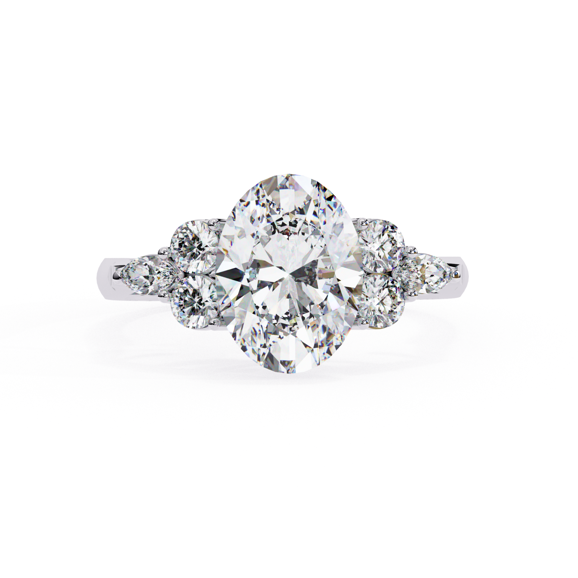 Celestia 2.10 CT Oval Center With Diamond Side Stones Ring( 2.50 CTW Diamonds)