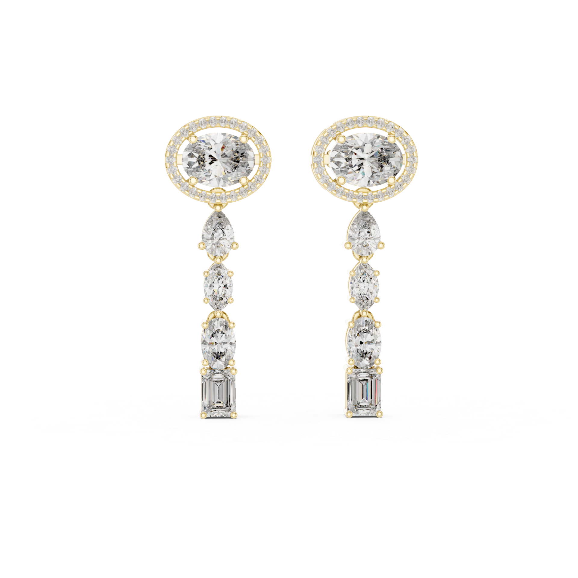 The Oval Halo Cascade - 3.30 Carat Mixed Diamond Drop Earrings