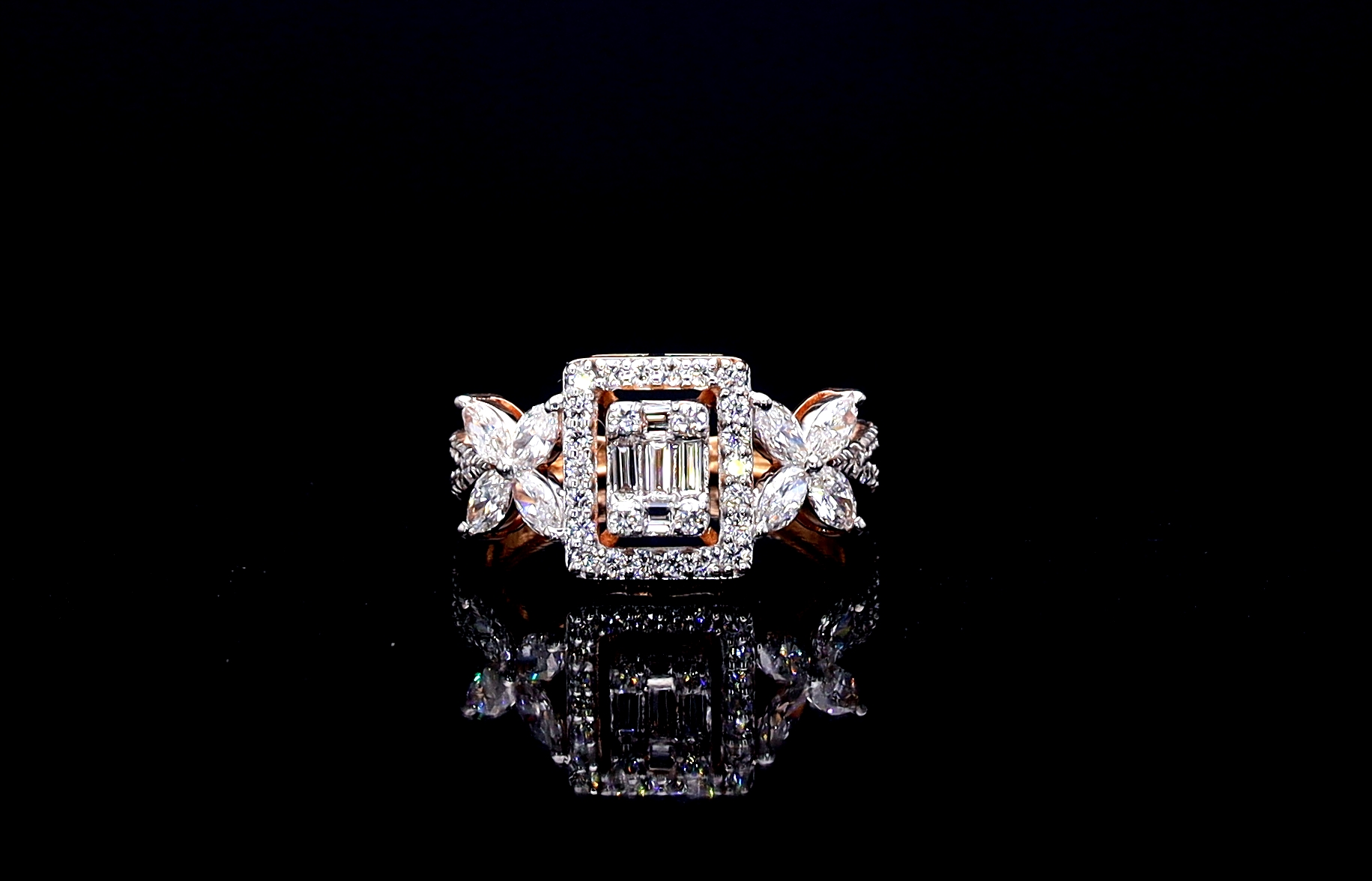 1.20 Carat Ring -Baguette Diamond Surrounded By Smaller Diamonds.