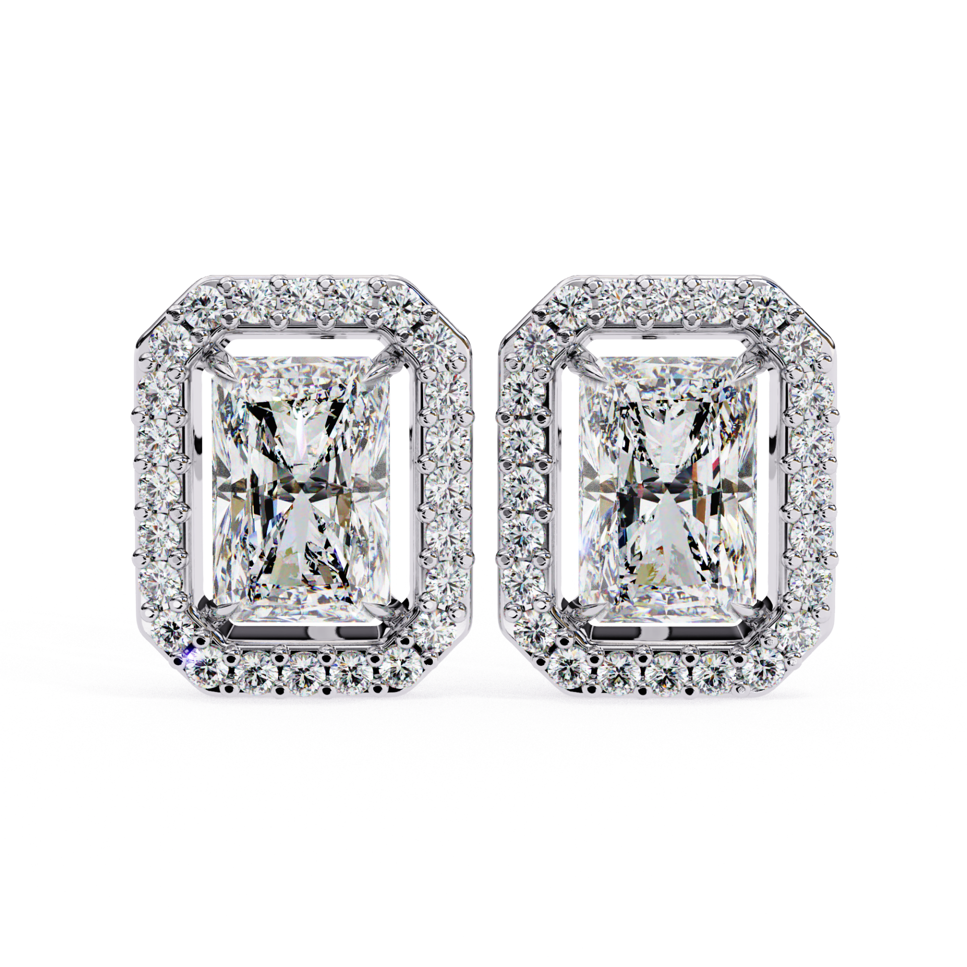 1.50 Carat Solitaire Radiant Cut Lab Grown Diamond Halo Earring.(1.80 CTW Diamonds)