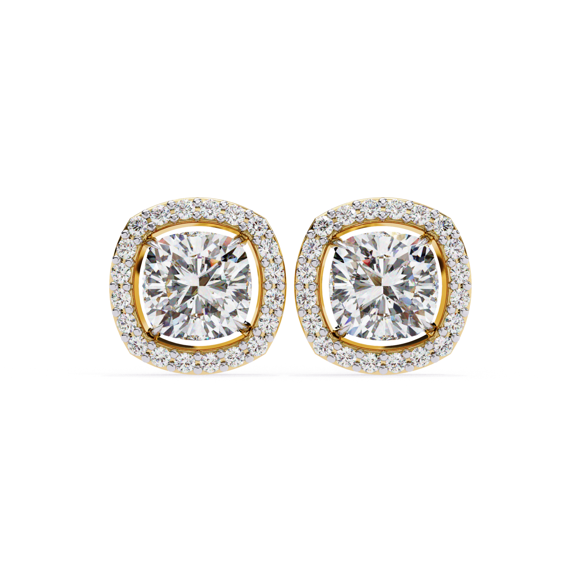 1.60 Carat Solitaire Cushion Halo Studs.(1.80 CTW Diamonds)
