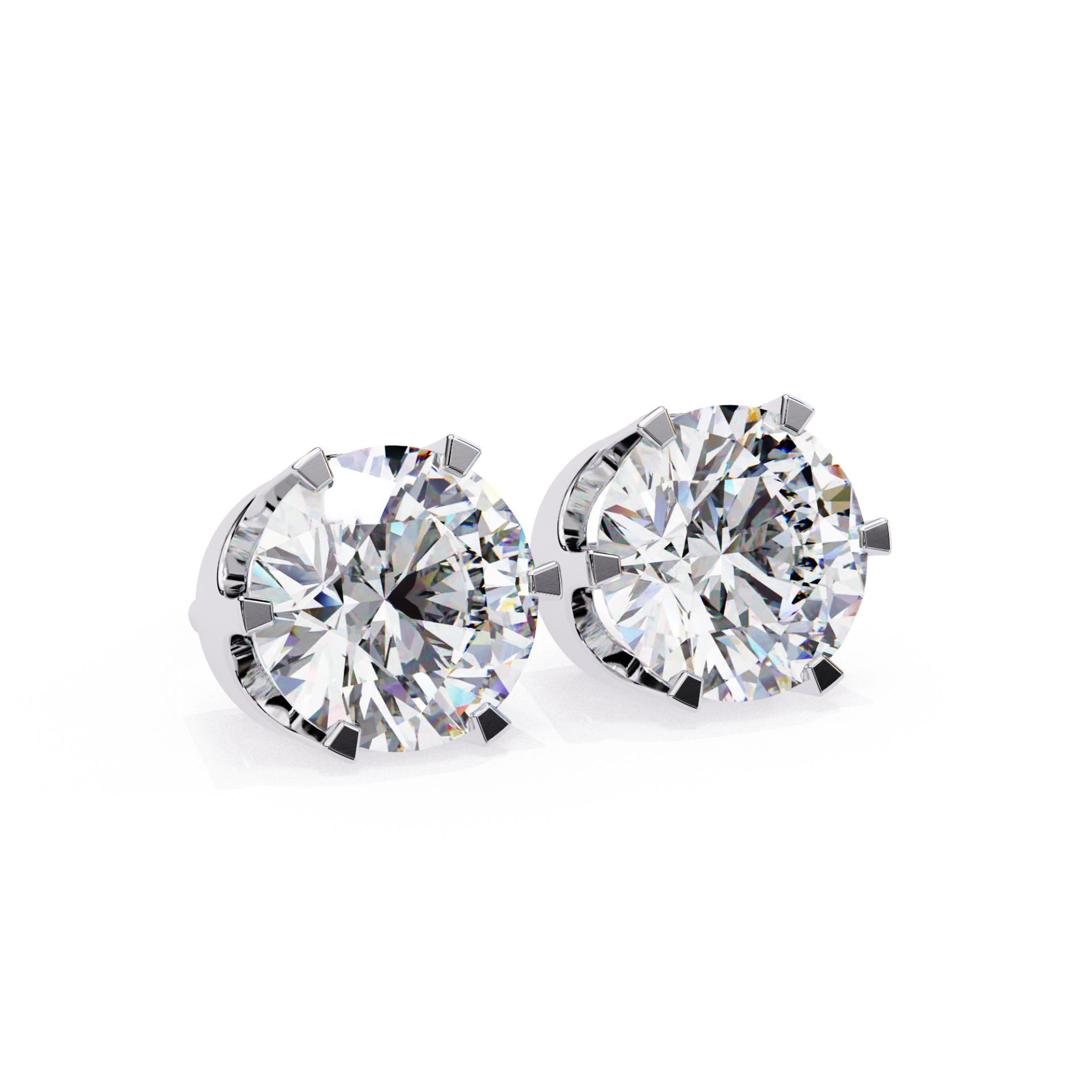 2.60 Carat solitaire Round Cut Lab Grown Diamond Six Prong Stud Earring.
