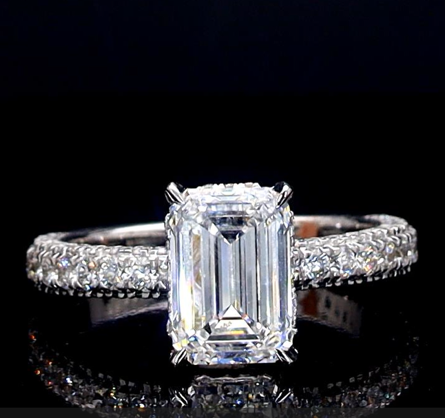 3 Carat Emerald Solitaire Ring With Pave Band.(4.20 Ctw Diamonds)
