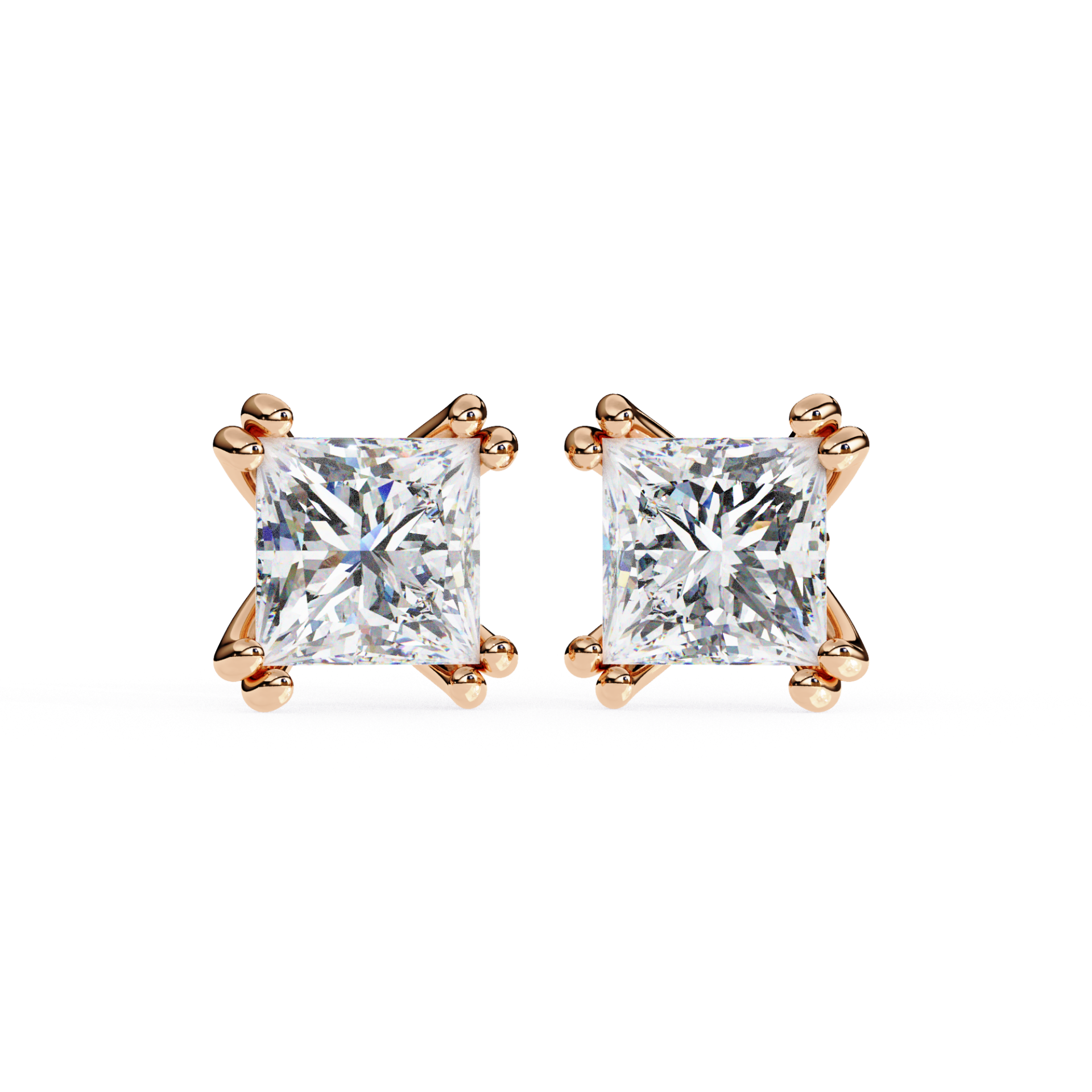 3 Carat Princess Cut Lab Grown Diamond Stud Earring.