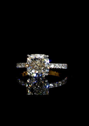 3.40 Carat Cushion Solitaire Diamond Ring.