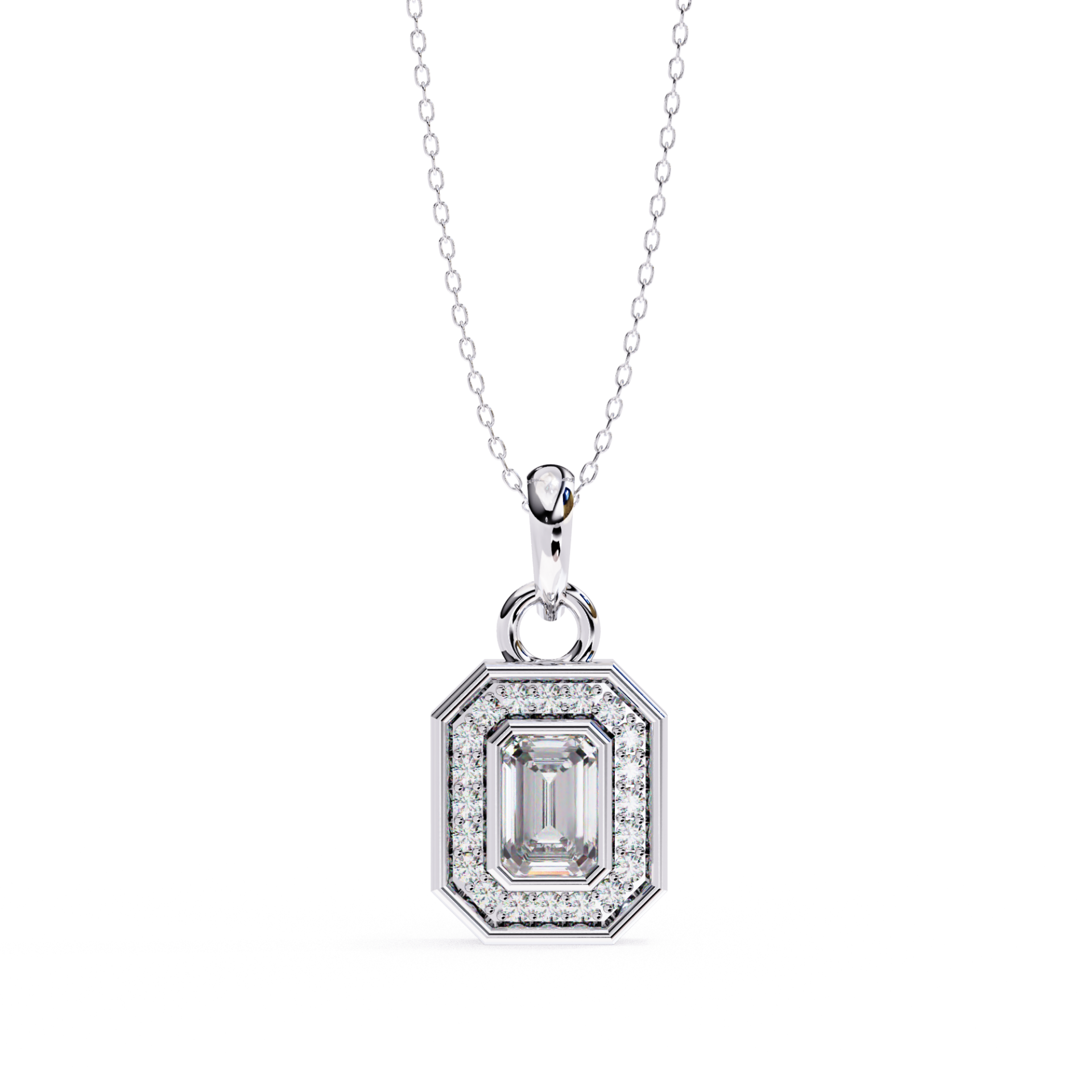80 cent Emerald Solitaire Lab Grown Diamond Halo Pendant (without chain)(1 CTW Diamonds)