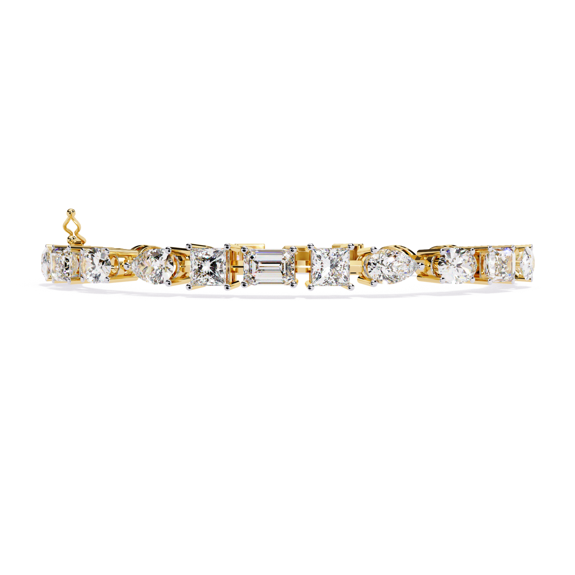 13.80 Ct Bracelet Showcasing Pear, Princess, Oval & Emerald Cut Diamonds.