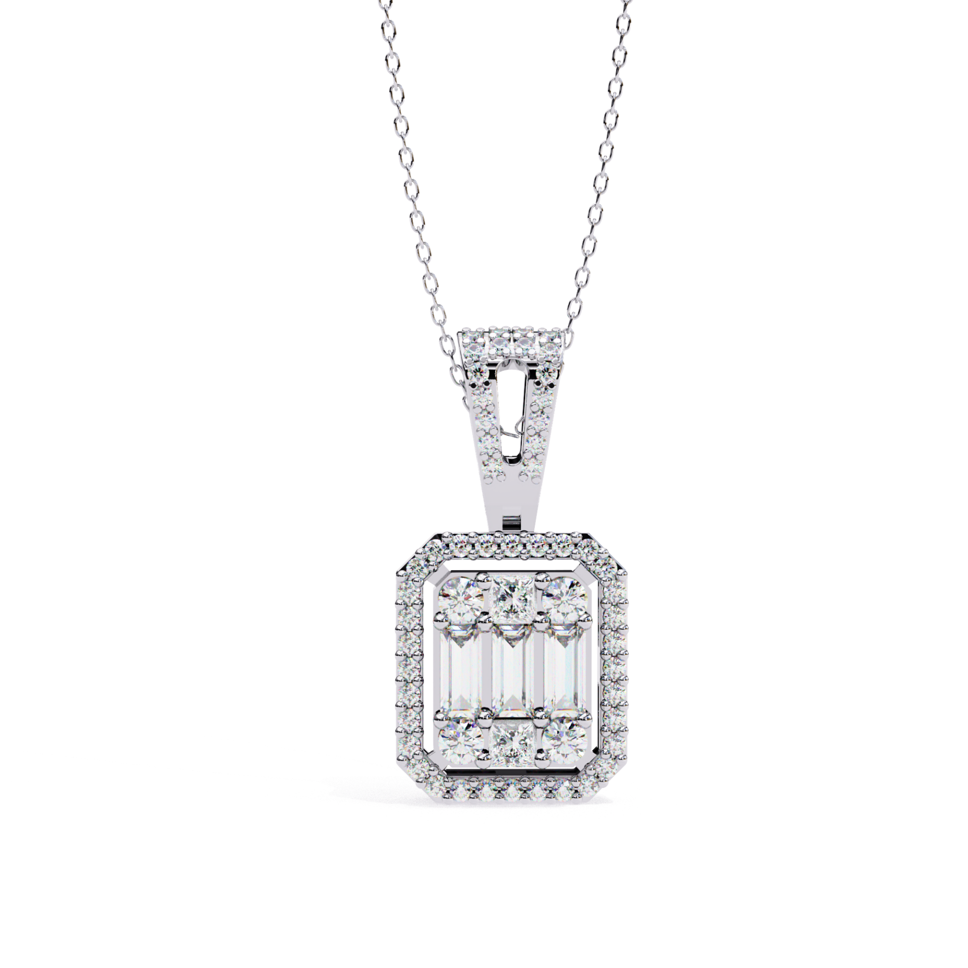 0.70ct Diamond Pendant with a Rectangular Cluster and Halo Setting (without chain)