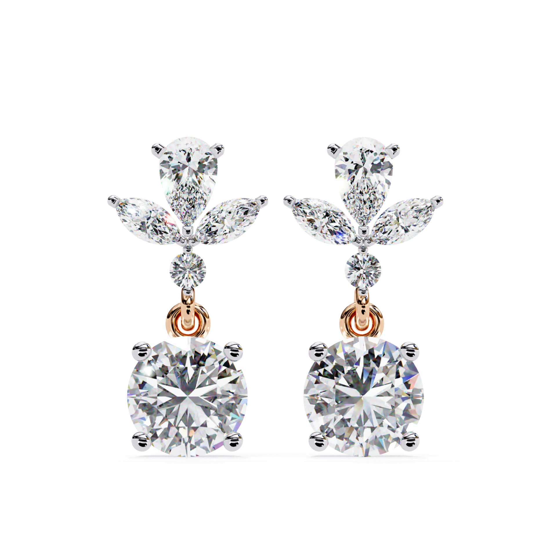 Floral Pear, Marquise & 1 carat Round Solitaires Drop Diamond Earrings (1.30 CTW Diamonds)