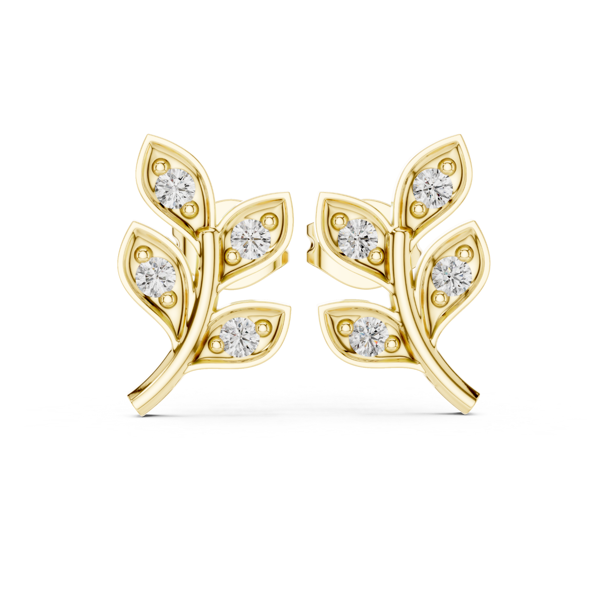 Leaf Whisper – Round Diamond Earrings